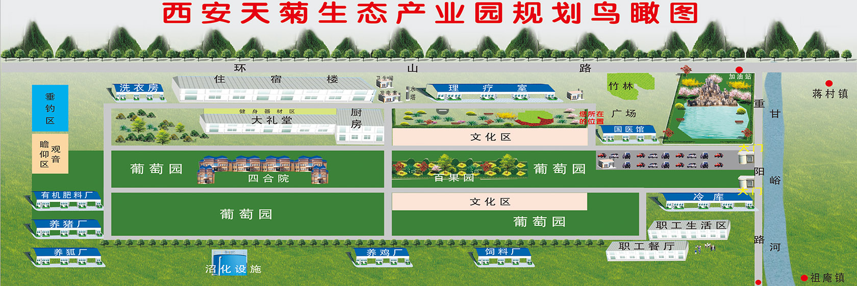 西安天菊实业有限公司是以科研为先导,集生产、经营、销售为一体的大型民营企业。产品涉及工业、农业、畜牧业、鸡胚胎提取等领域,年产值上千万。公司坐落于陕西省(西安市)关中地区绵绵八百里秦岭脚下,风光宜人,景色优美。公司下设天菊胚胎生物工程研究所、天菊生态产业园、天菊科光871耐火炉料厂、天菊绿色有机肥料厂、天菊葡萄酒酿造厂五大实体,占地40万平方米,建筑面积30多万平方米。